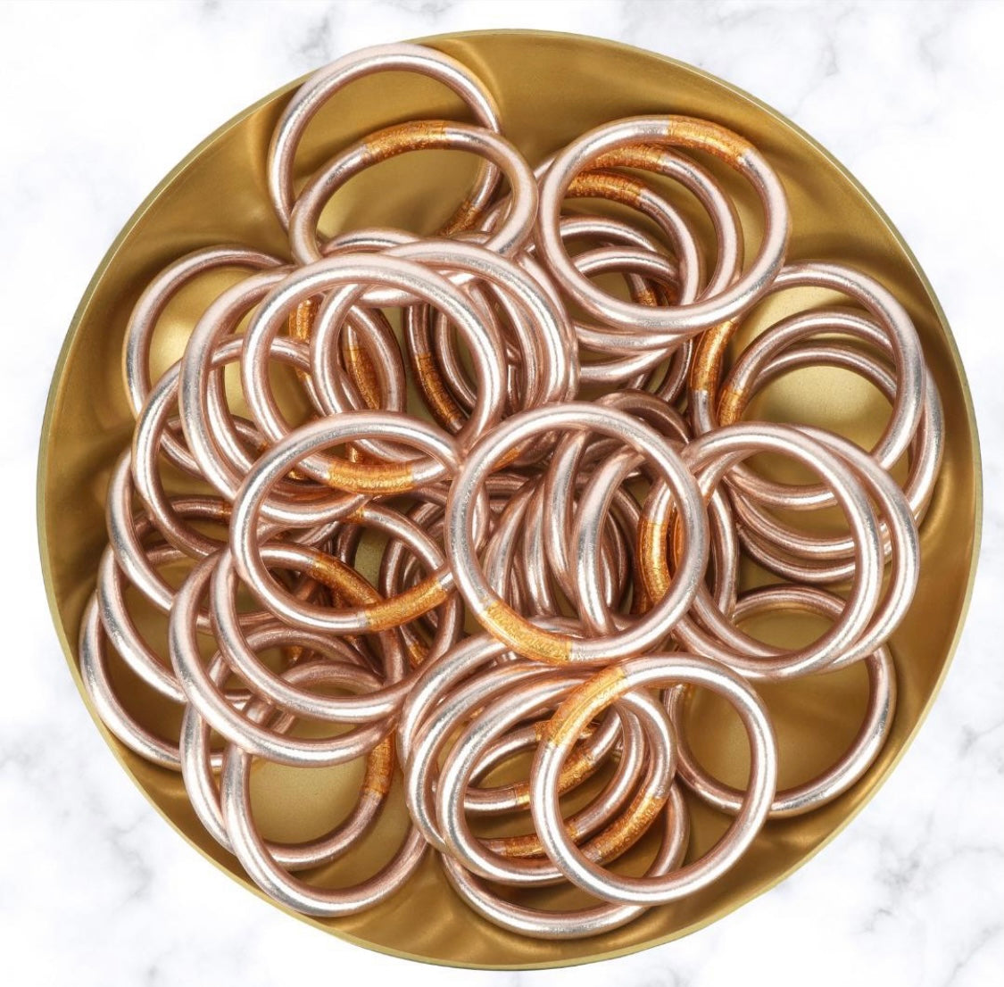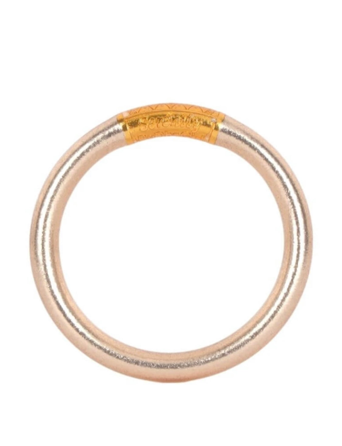 Cada brazalete Tzubbie Champagne All Weather está hecho por un equipo de más de 20 artesanos, cada brazalete está hecho a mano, cada uno es un trabajo de amor. Los AWB están hechos con productos orgánicos, a veces puede ocurrir una ligera diferenciación de color, esto es natural ya que las condiciones de humedad y temperatura afectan el resultado. Nuestro abalorio de oración de la serenidad está hecho con latón sin recubrimiento que, con el paso del tiempo, puede desarrollar una pátina verdi-gris. Nuestro punto es que Tzubbie Champagne All Weather Bangle es un producto que envejecerá, desarrollará carácter y seguirá siendo hermoso ... al igual que nuestras BuDhaGirls.