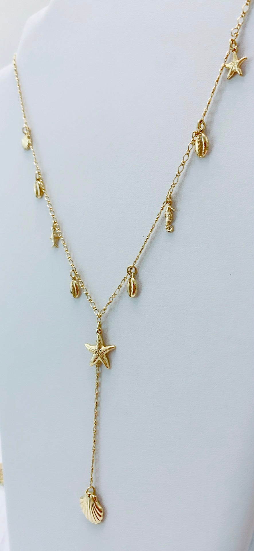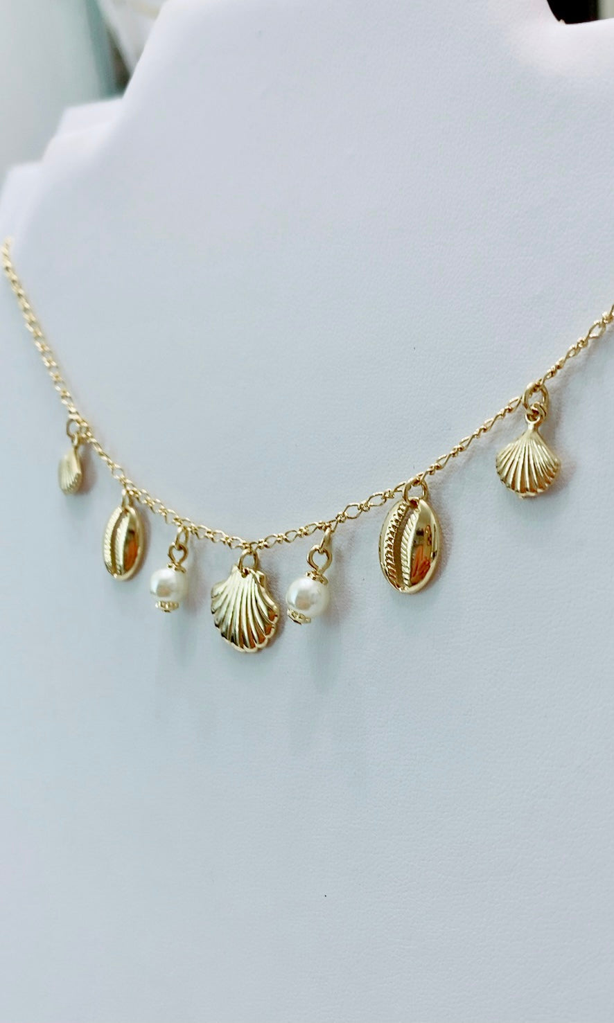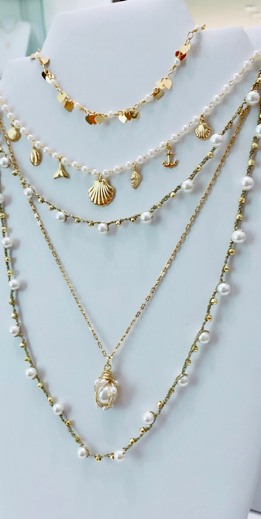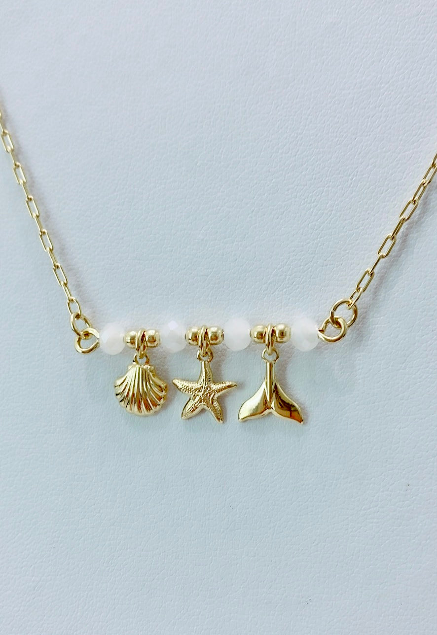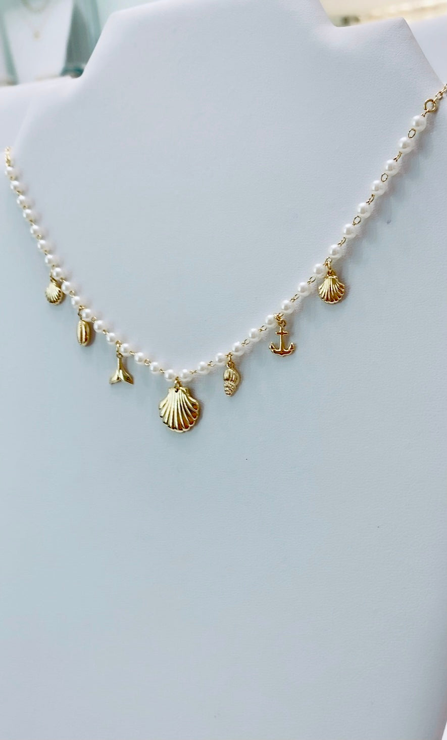 Cadena con perla, cristales checos y diferentes símbolos marinos.