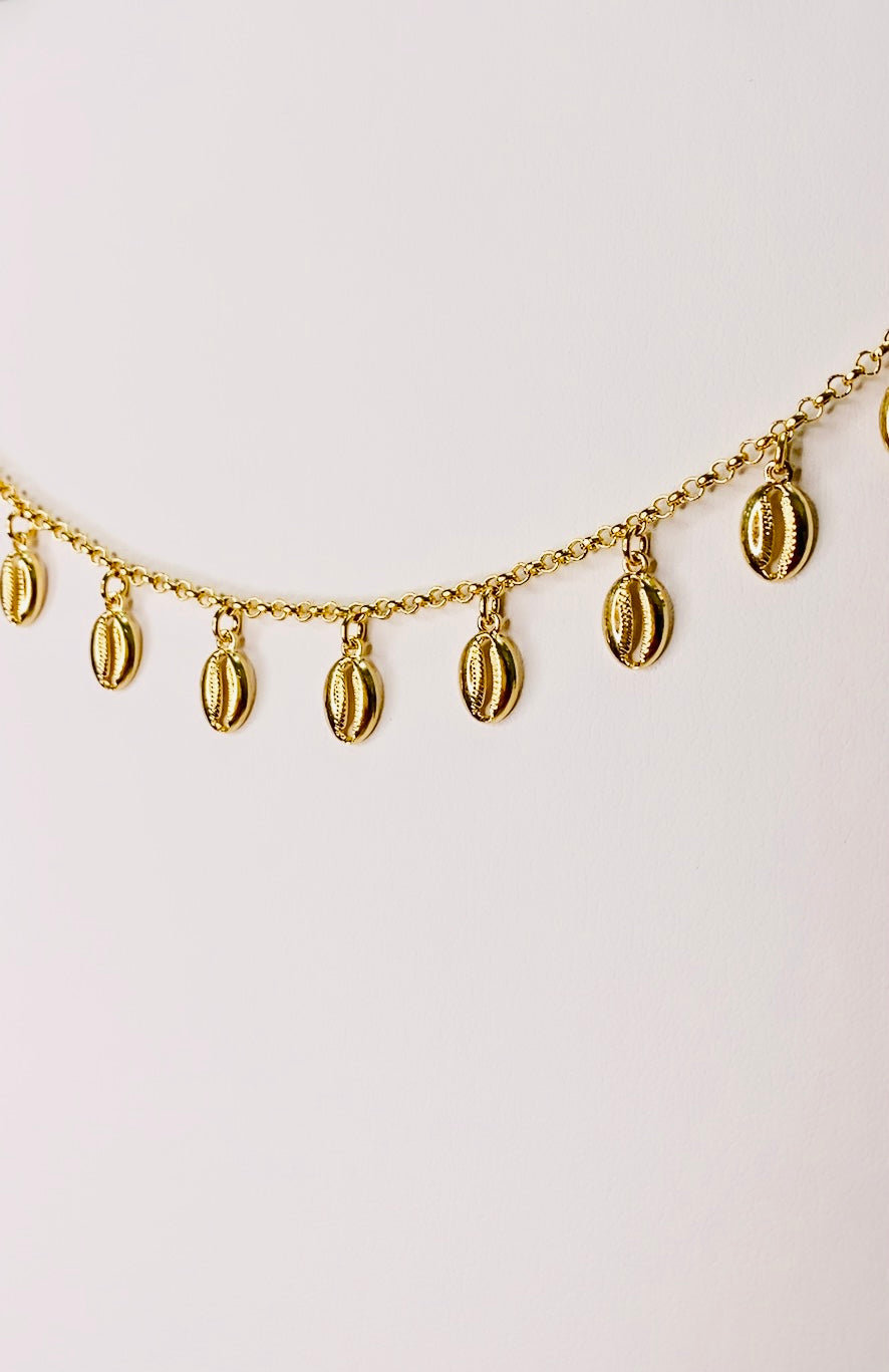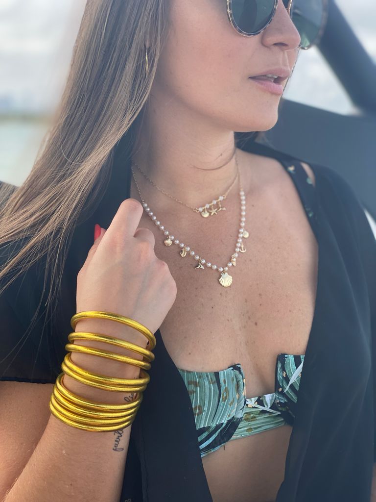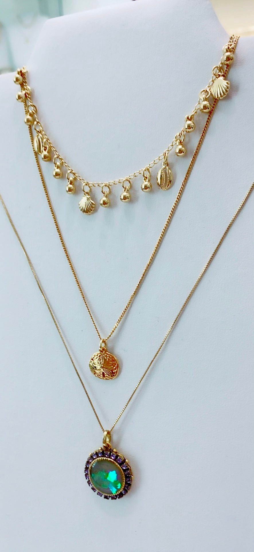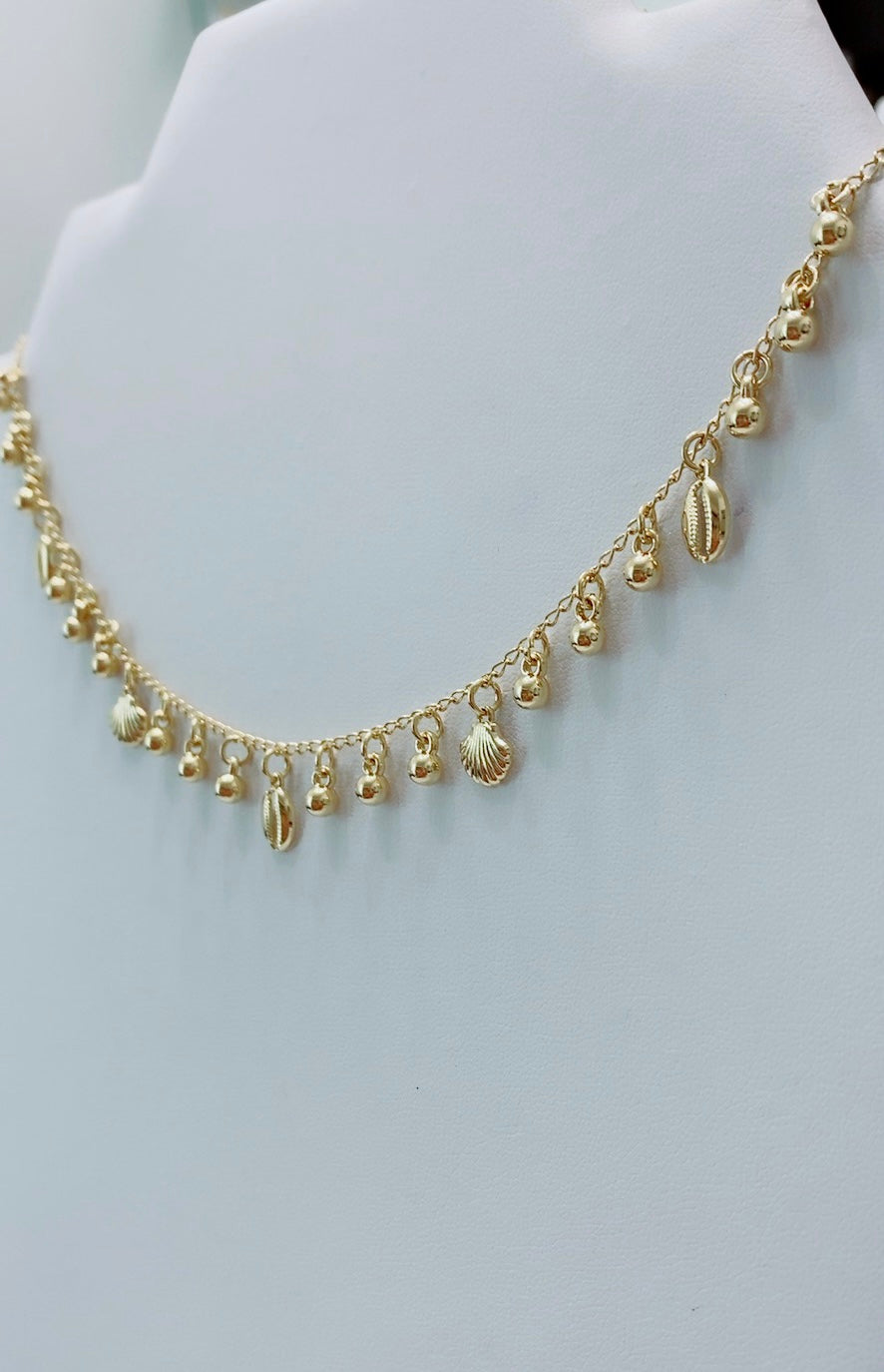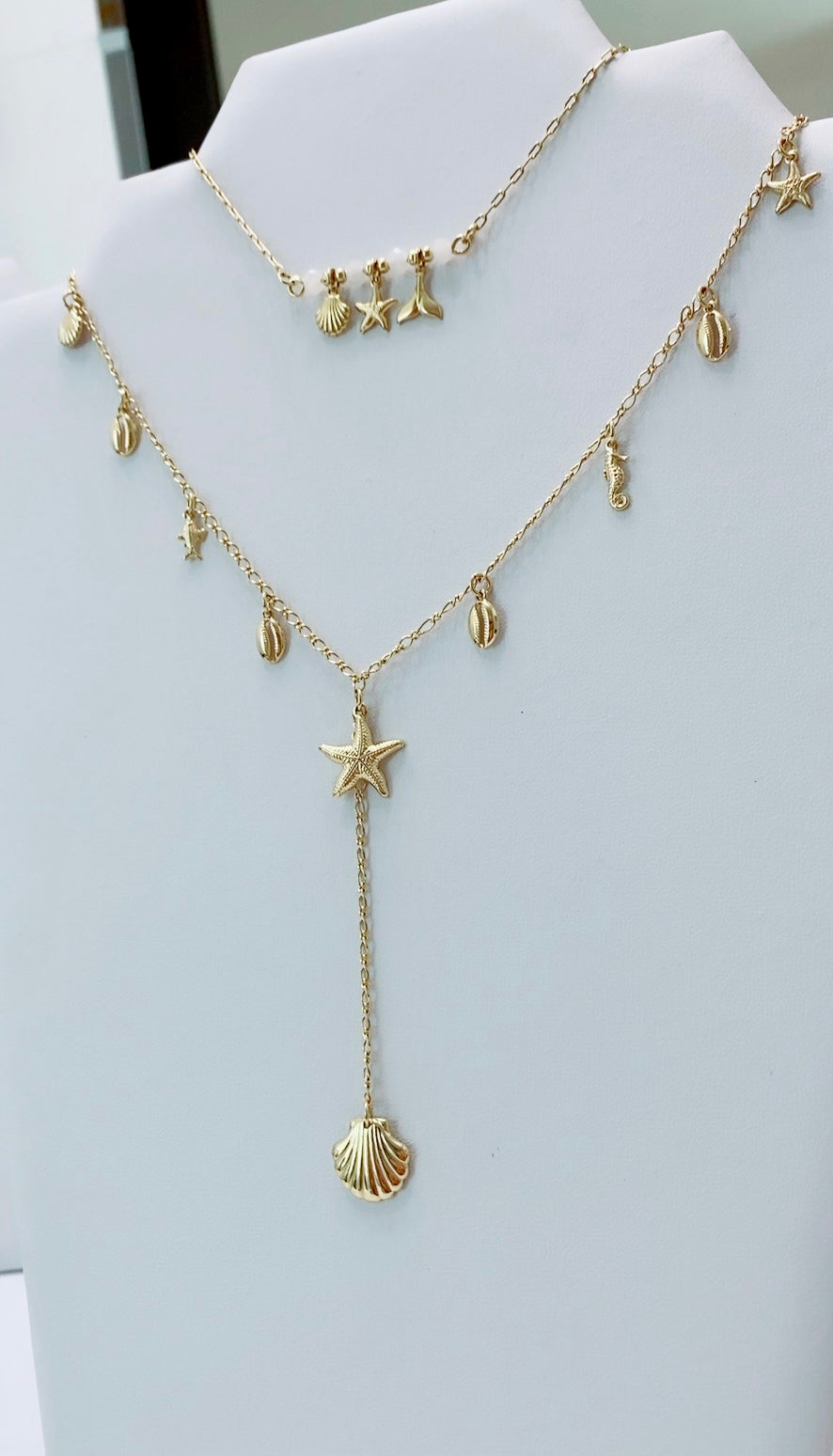 Cadena con perla, cristales checos y diferentes símbolos marinos.