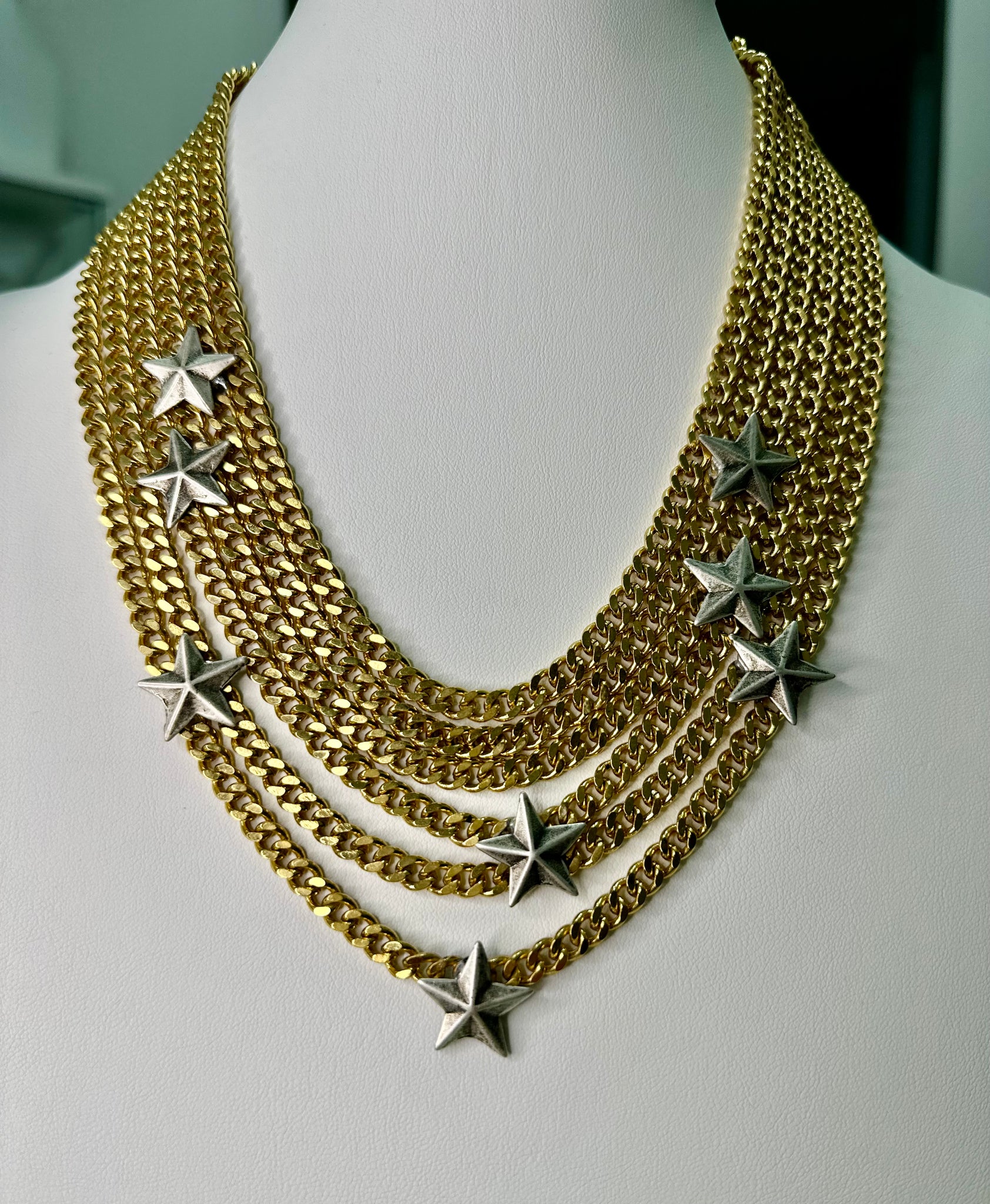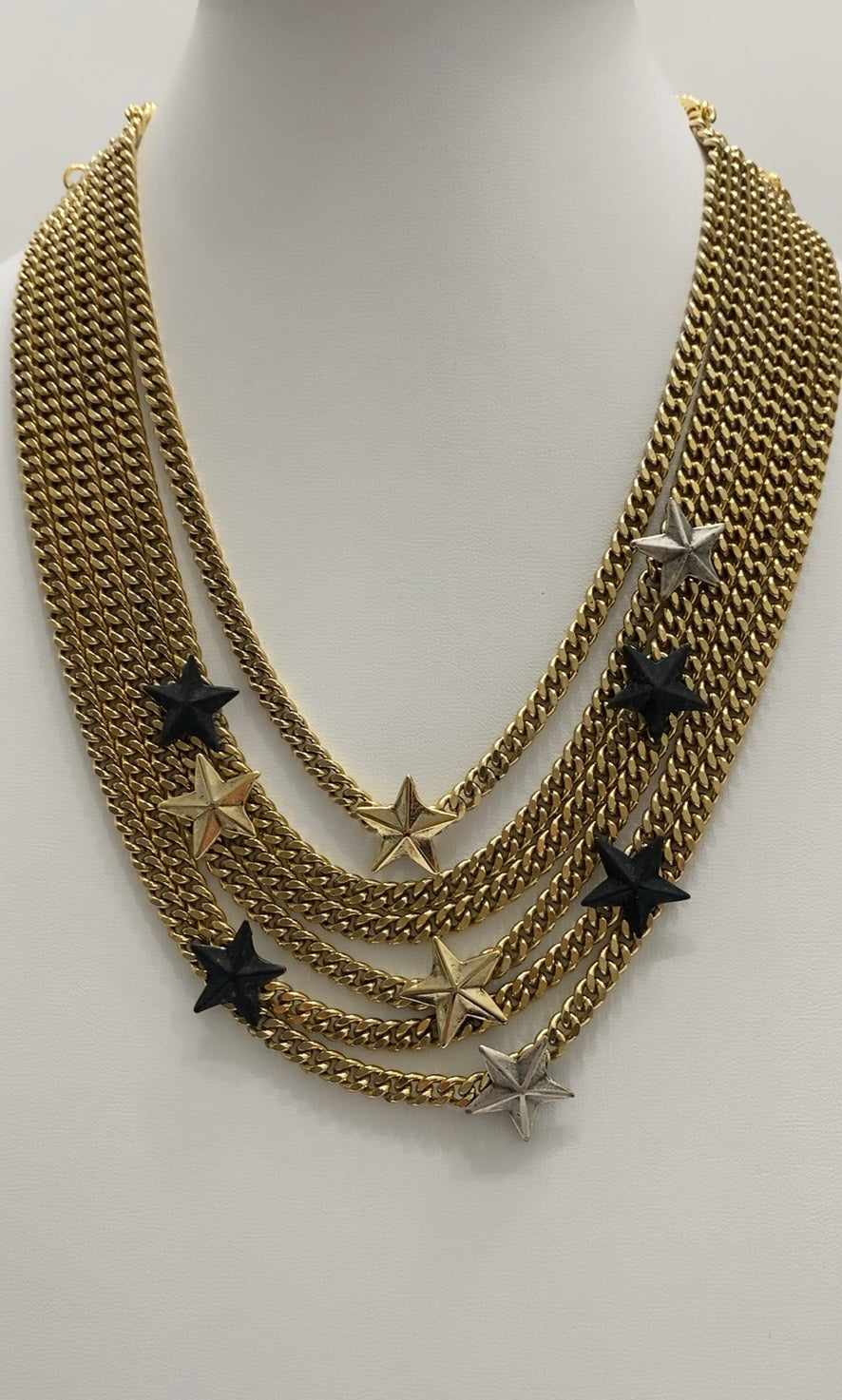 Collar de múltiples cadenas en layers y estrellas mixtas.