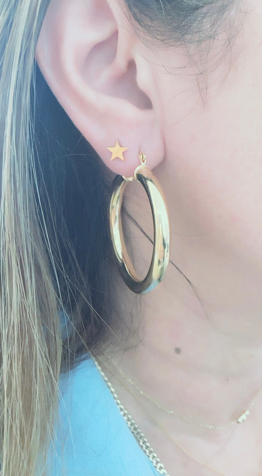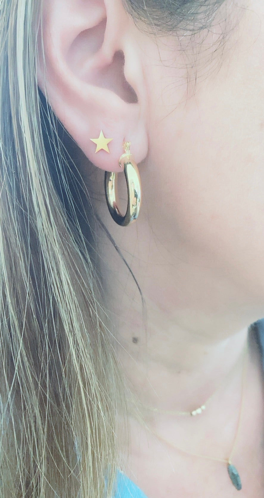 Material: Plata con baño en oro. Gold filled brasileño 14k y pave. One star steel