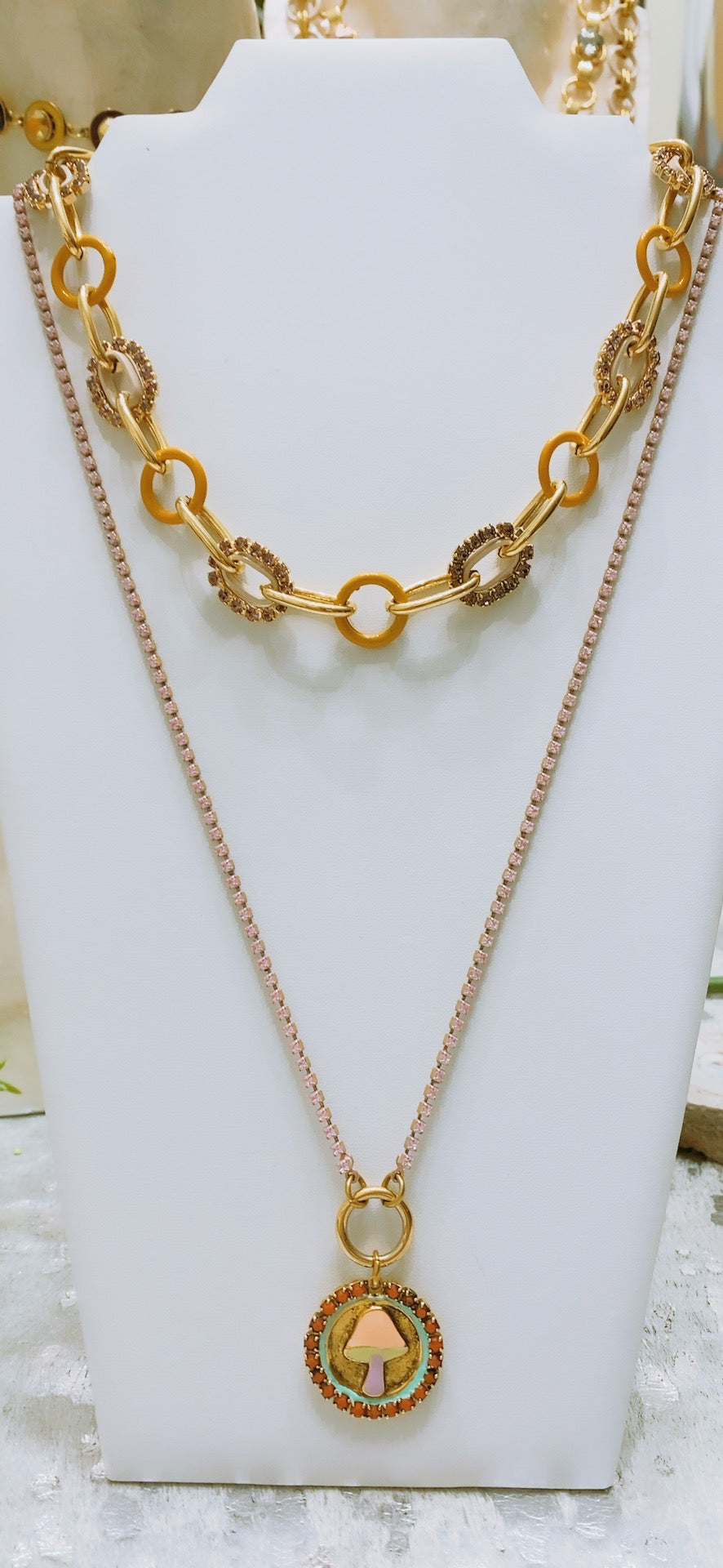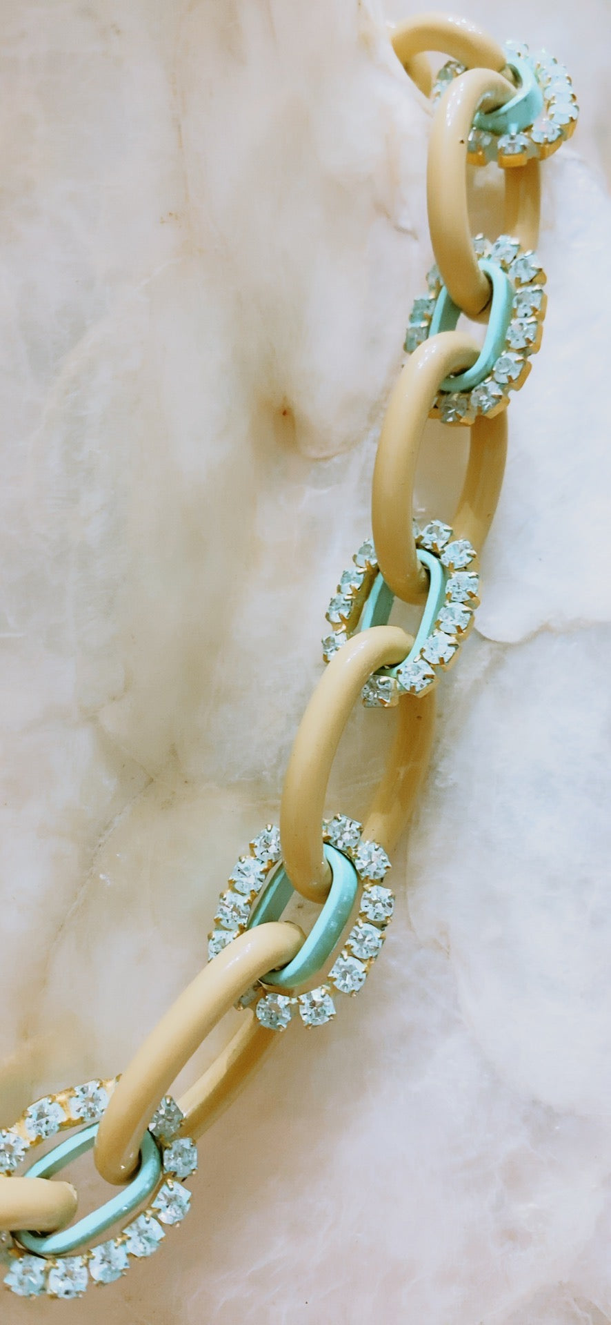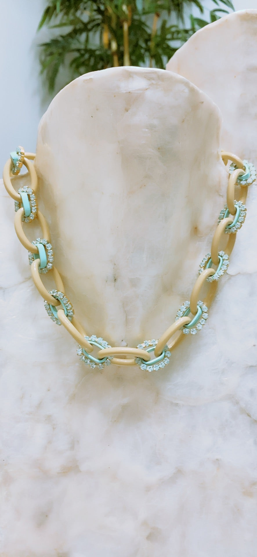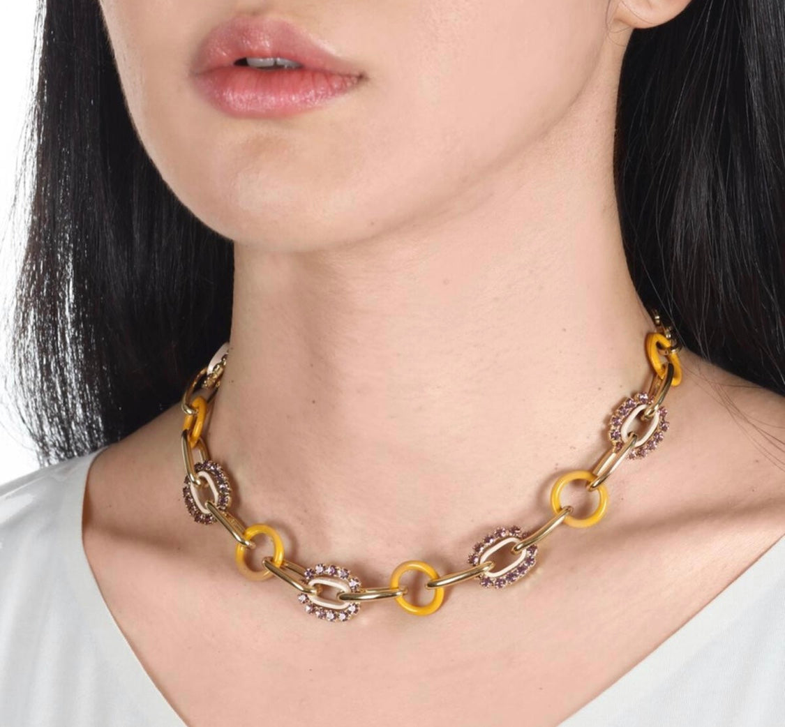Collar en aluminio pintado, brass y cristales swarovski. (Patina)