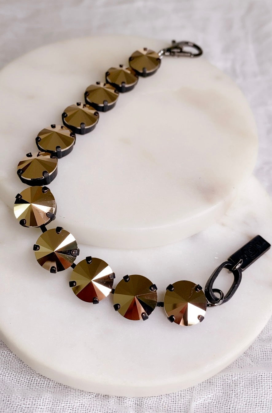 Pulsera en brass (dorado o plateado) con cristales swarovski.