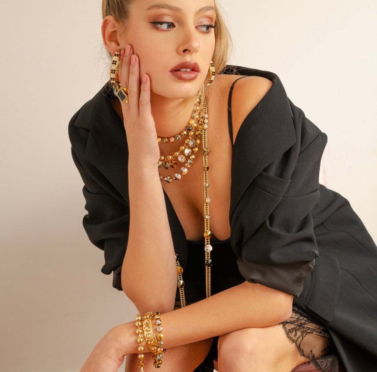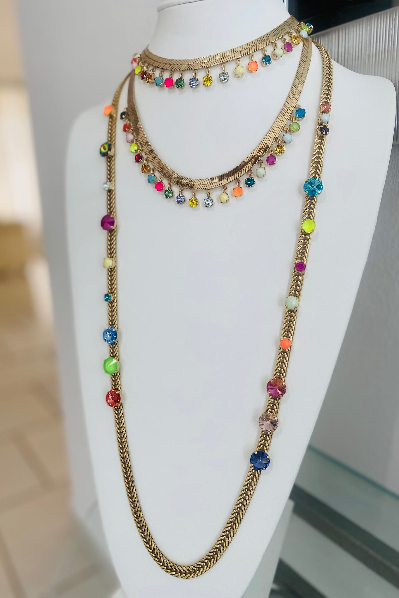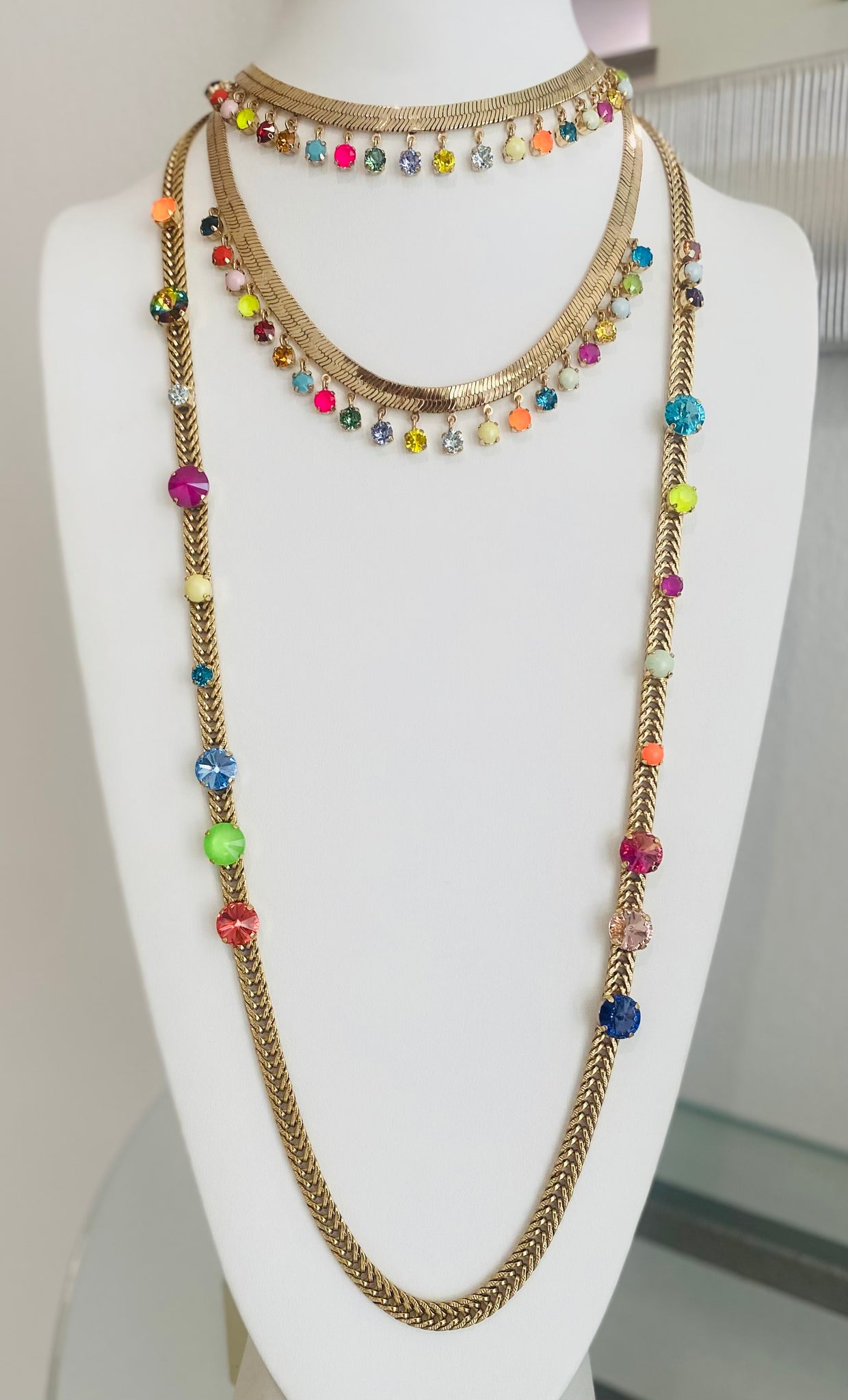 Moderna cadena flat con Swarovski de la colección Tova. El color de las piedras puede variar.