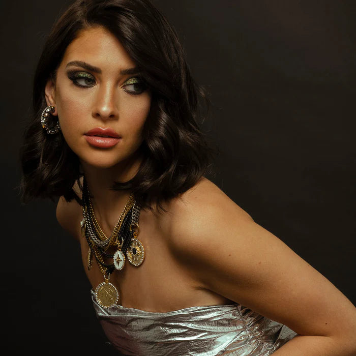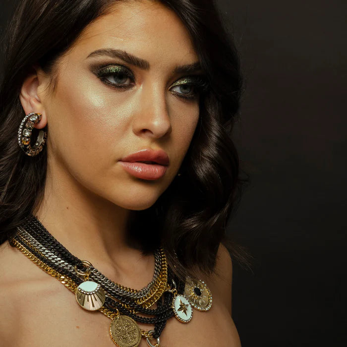 Hecho a mano con los materiales estelares de oro antiguo, plata y latón plateado, y adornado con cristales deslumbrantes y esmalte pintado a mano.
